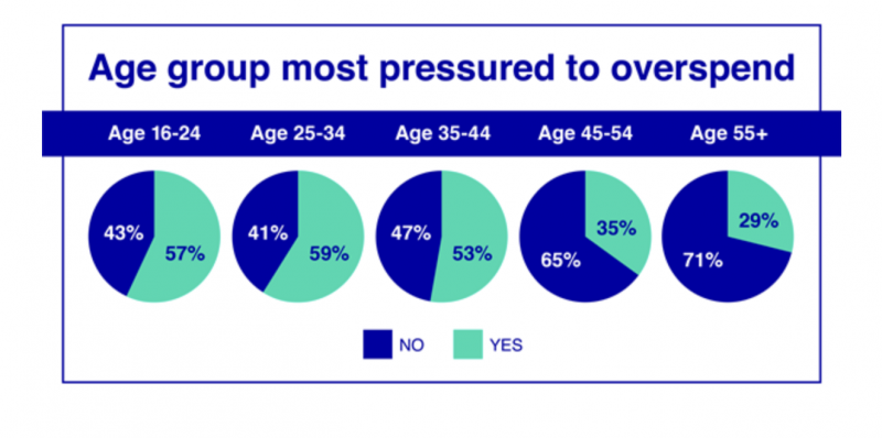 As you can see above, younger age groups are more pressured to overspend compared to those in age groups 45 and above. Perhaps a big part of this can be attributed to social media, which is more typically used by younger generations.